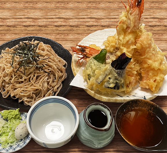 当店では、香り高い自家製そばを中心に、旬の食材を使ったランチメニューをご用意しております。